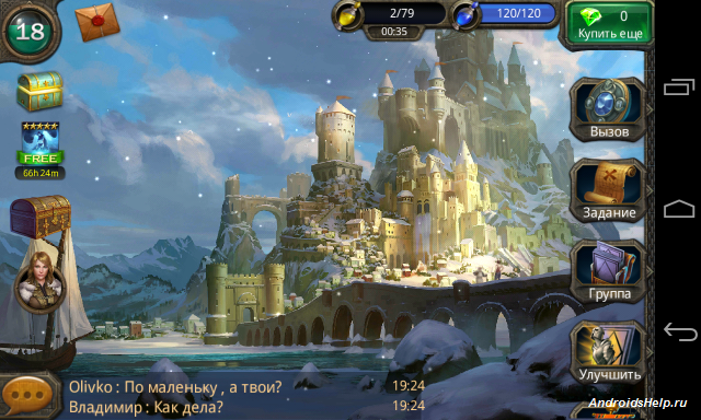В меню как всегда найдете магазин, как игровой, так и реальный. Кнопки вызова героя, ваша группа, улучшения, настройки и карты открытых локаций и замков. Для сражения с реальными людьми достаточно пройти на арену, но чаще там люди которые не прочь вложить в своего героя не мало реальных денег.