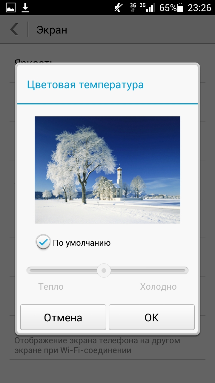 Если кого не устроят цвета, отображаемые на дисплее смартфона, в настройках Honor 3X есть специальный пункт цветокоррекции, позволяющий регулировать цветовую температуру, сделав цветовую гамму картинки теплее или холоднее.