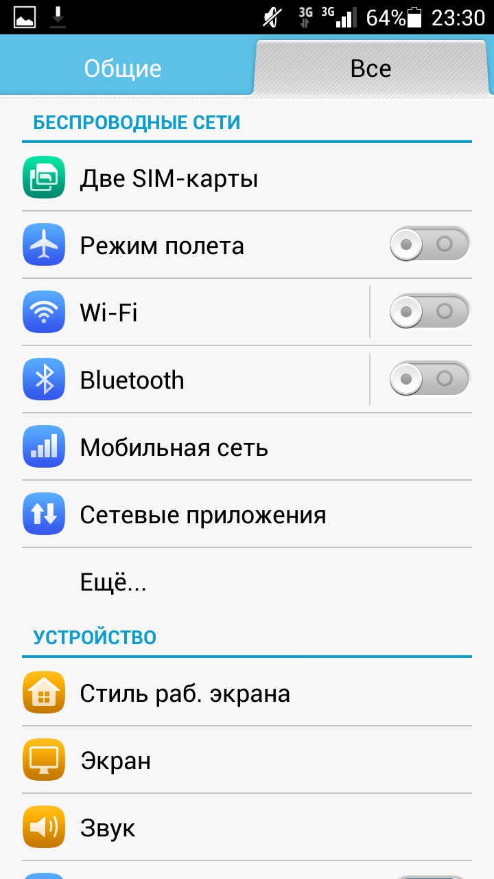 Впрочем, на приложениях особенности смартфона не заканчиваются — часть интересных возможностей скрыта в его настройках. Они разбиты на две категории — «Общие» (содержит только наиболее часто используемые пункты) и «Все».