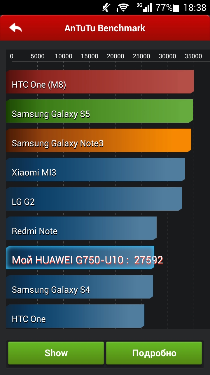 Несмотря на это, в многопоточных задачах новый процессор Mediatek (а он умеет работать со всеми ядрами одновременно) показывает хорошую производительность и по баллам в бенчмарках сравним с Qualcomm Snapdragon 600. Так, в синтетическом тесте AnTuTu Huawei Honor 3X с результатом 27592 балла даже немного опередил HTC One и Samsung Galaxy S4. В 3DMark Ice Storm Extreme гаджет показал результат 6 428 баллов.