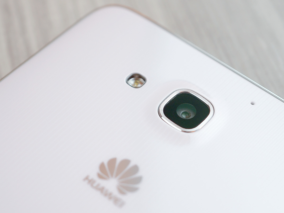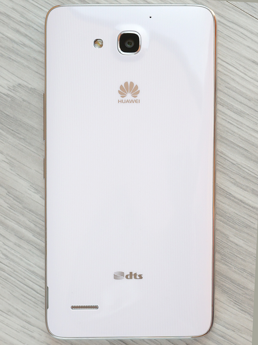 Заднюю панель аппарата целиком закрывает крышка из глянцевого пластика, на которую нанесены логотипы Huawei и DTS. В её верхней части расположены объектив основной камеры и светодиодная вспышка, а в нижней — прорезь для динамика.