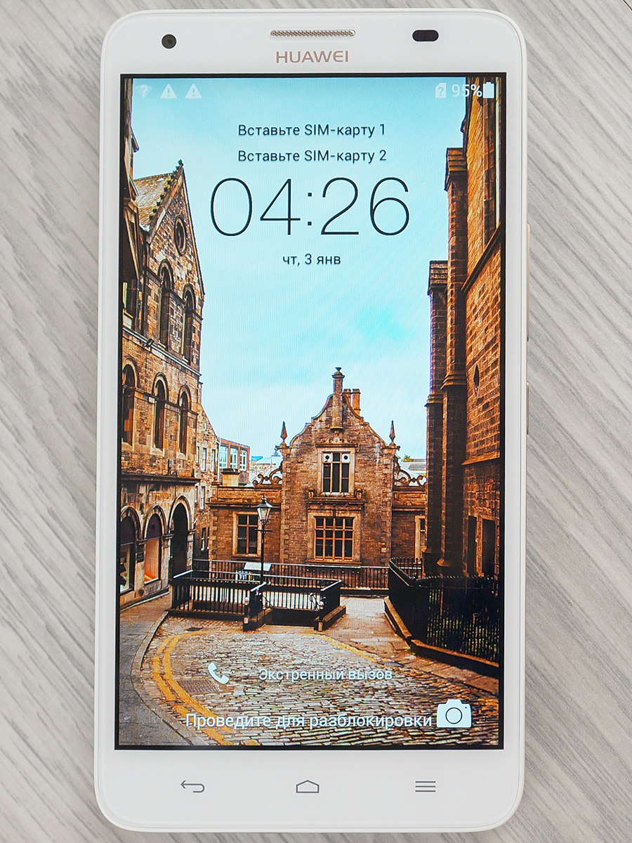 Зато остальные характеристики дисплея достойны лишь похвал. Контрастный, насыщенный, имеет хорошее олеофобное покрытие, с которого легко стирать отпечатки пальцев, а также корректную автоматическую регулировку яркости с помощью соответствующего датчика. Углы обзора максимальны — небольшие выцветания заметны только при очень сильных наклонах. В целом можно сказать, что дисплей в Honor 3X действительно хороший, и это не желание похвалить устройство, а состоявшийся факт.